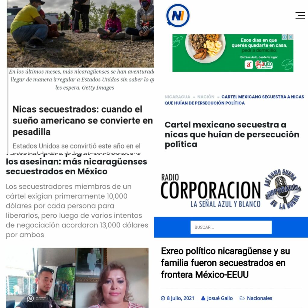 Junio de 2021 despuntó con la historia de siete nicas entre ellas dos mujeres y la hija de una de ellas, que estaban en manos de cárteles mexicanos. La madre de la joven matagalpina Gerlenis Jiménez contó que su hija y su nieta salieron del país en busca de una mejor vida. Por cada una, los secuestradores pidieron 10 mil dólares. 12 días después lograron su libertad.