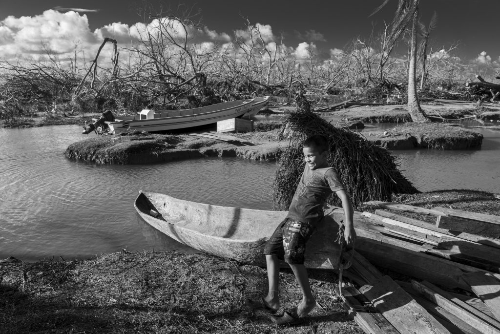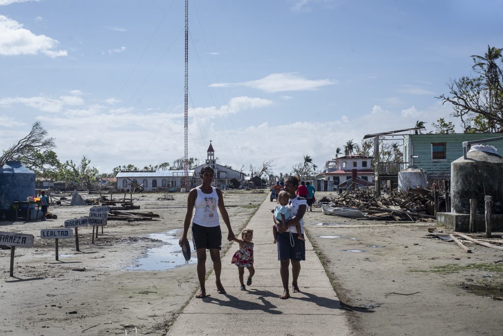 “Ahora es un triste, no es un muelle, es oscuridad donde no hay nada, sólo esos palitos de coco que están y la luz del día, el sol que nos pega porque no hay un techo para decir que vamos a ir a escondernos debajo de esa casa, aquí estamos posando como seis familias”, relata Ivania en un fluido español con acento miskitu, quien camina entre los escombros dejados por ambos huracanes, cargando a su bebé de ocho meses de edad.