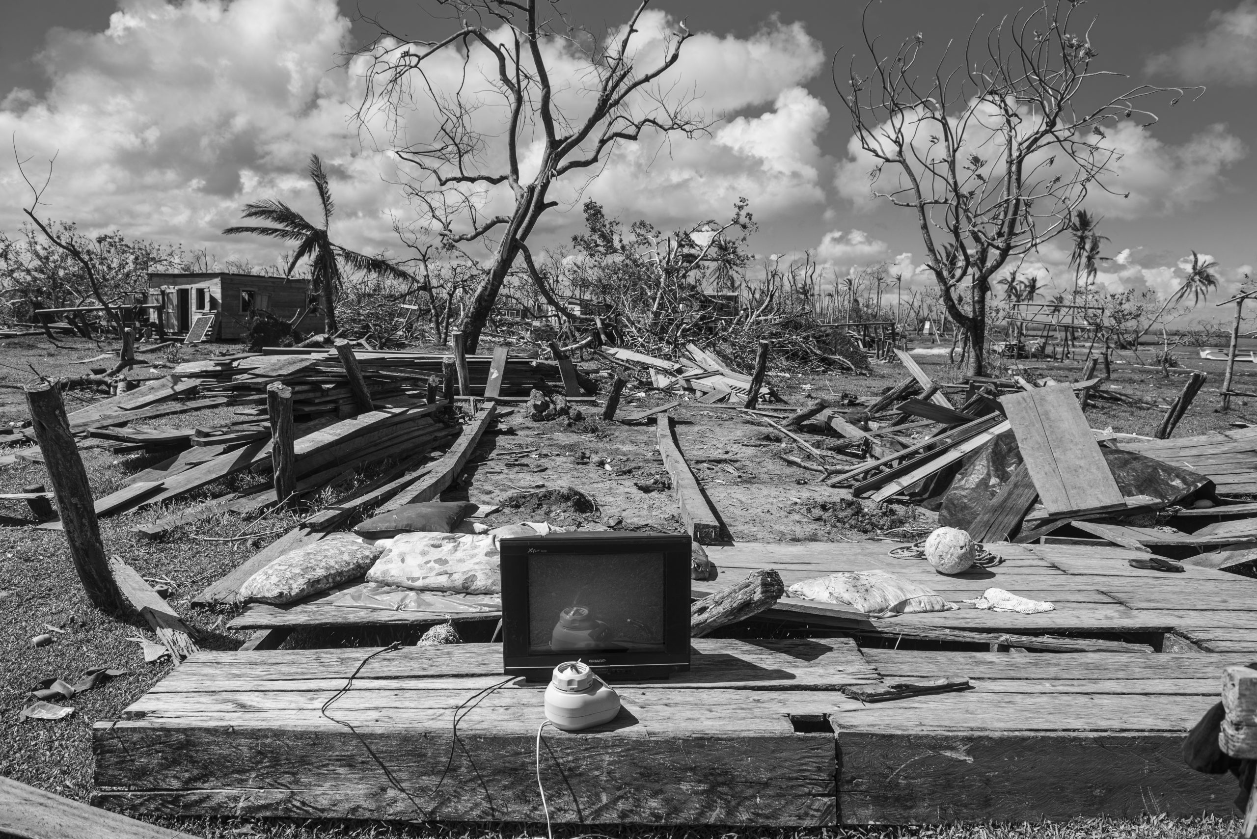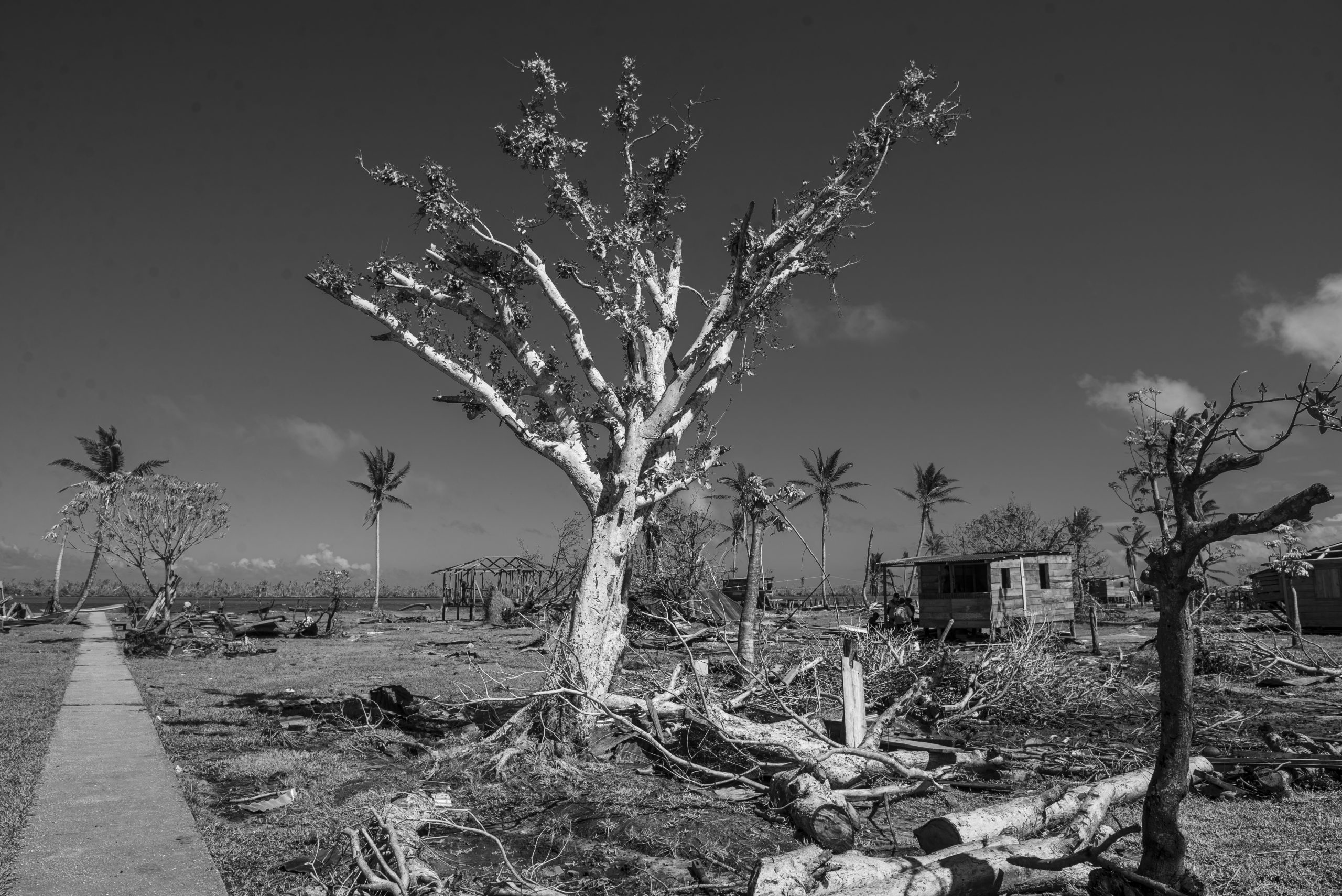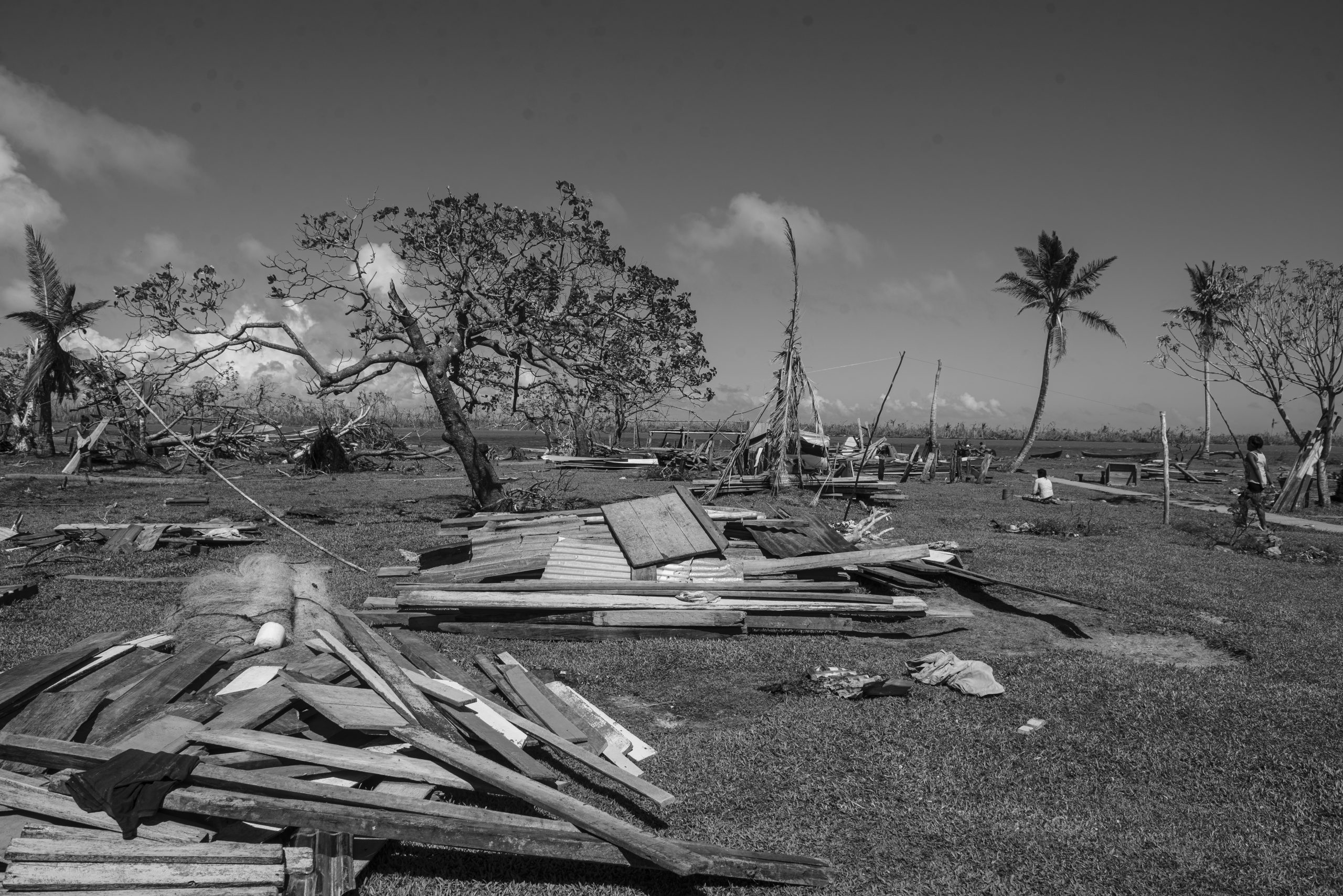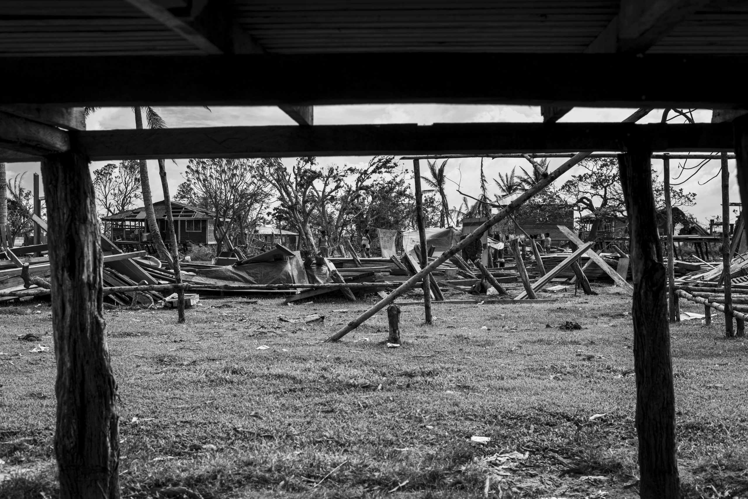A los alrededores de la casa de Mirza se escuchan los martillazos de hombres y mujeres que intentan construir nuevamente una casa con los restos de madera que el mar ha dejado. Otras personas se apoyan con sierras y motosierras para cortar los árboles que el viento arrancó y hacer uso de esa madera. Así los habitantes de Wauhta realizan, sin apoyo estatal, la jornada de limpieza y reconstrucción de los escombros que un mes atrás eran las casas que contenían sus vidas.