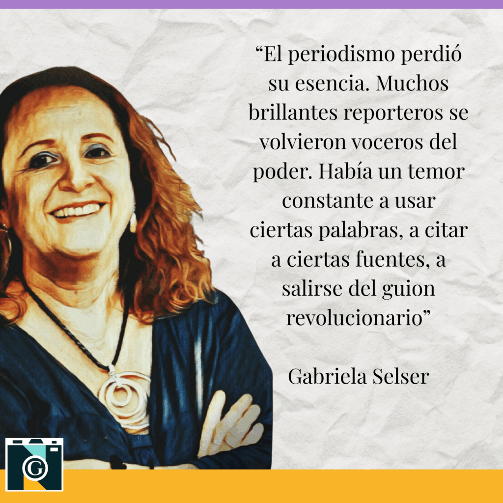 La periodista Gabriela Selser, hoy desde el exilio, recuerda que una vez le dijeron que no podía estar ahí. Que no podía escribir lo que había escuchado, ni guardar lo que había grabado, ni siquiera conservar los lapiceros con los que había tomado notas.